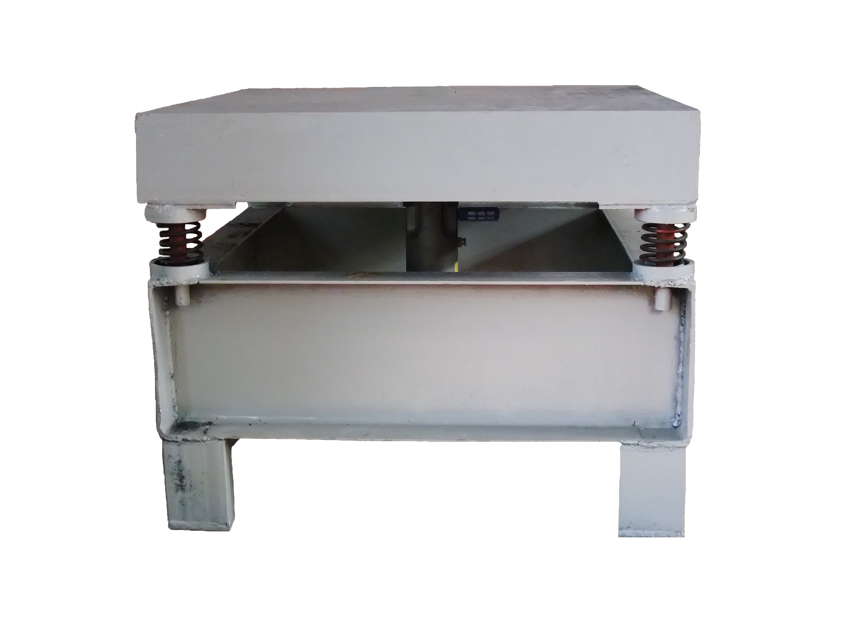 1、設備主體由12mm鋼板、槽鋼及工字鋼焊接而成,尺寸為1m*2m。采用提高加強筋受力的方式,使設備承重力達到1T以上,并確保設備在高負載、高頻率的振動下不變形不開裂。